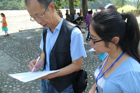 “綠色新生態(tài)”團隊的成員來自四川農業(yè)大學資源與環(huán)境學院,此次實踐的主題是“宣環(huán)保足探石棉縣,揚生態(tài)共筑中國夢”。隊員們前往災后重建縣城——雅安市石棉縣開始為期8天的征程:走訪石棉縣下屬各鄉(xiāng)鎮(zhèn),發(fā)放調查問卷,采訪相關政府部門,參觀革命紀念館等。雖然實踐進展的不是一帆風順,但隊員們仍堅持不懈,不斷反思自我!敖裉斓膶嵺`帶給我最多的就是震撼和感動,在分發(fā)便利貼時遇到了很多困難,但克服這些困難之后會有一種深深的滿足感。飽含濃郁的紅色文化氛圍的安順是我們小隊宣傳‘中國夢’的絕佳之地,我們還要更加努力!标爢T胡瀚文在中國工農紅軍強渡大渡河紀念館做環(huán)保宣傳時這樣告訴記者。另一位隊員郭瑀說:“能深入鄉(xiāng)村進行面對面的了解對我來說是一個全新的經歷,很新鮮也很有意義。雖然實踐的時候很累,但還是有一股力量支撐著自己堅持下去,我們的成員們都很棒,相信我們能取得好的成果!