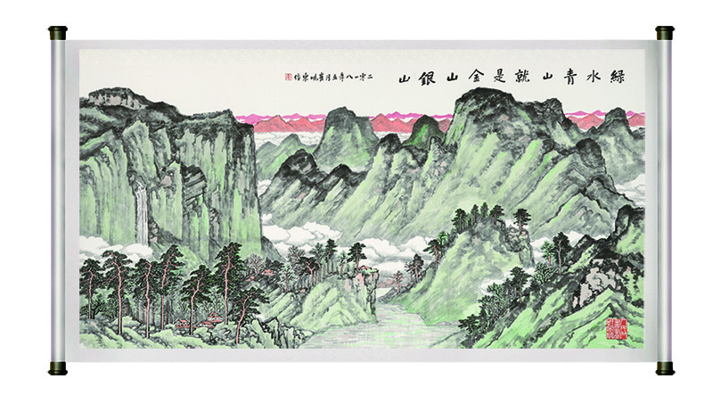 黨的十九大報告指出,人與自然是生命共同體。綠水青山就是金山銀山不僅是一種理念,更要把它變成實踐,成為推進中國生態(tài)文明建設的指導思想,推動形成人與自然和諧發(fā)展的現代化建設新格局。該系列發(fā)于此意。此畫為人民網邀著名畫家創(chuàng)作,素雅大氣,意蘊橫生。