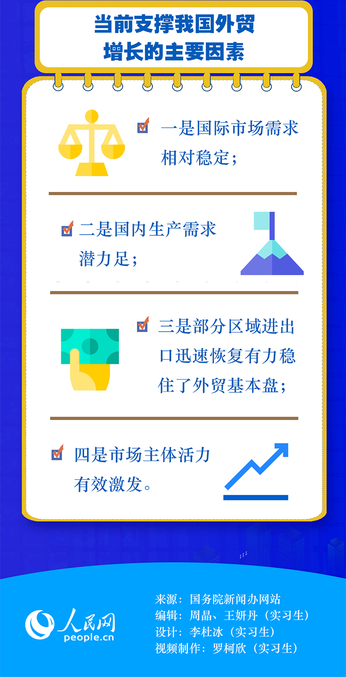 商務(wù)部原副部長魏建國在接受人民網(wǎng)“強(qiáng)觀察”欄目記者采訪時(shí)表示,上半年的外貿(mào)增長主要有三方面原因:首先,高效統(tǒng)籌疫情防控和經(jīng)濟(jì)社會發(fā)展取得實(shí)效。其次,多措并舉穩(wěn)市場主體。隨著國家穩(wěn)經(jīng)濟(jì)一攬子政策措施的落地見效,外貿(mào)保穩(wěn)提質(zhì)等各項(xiàng)工作加快推進(jìn),我國外貿(mào)市場主體活力有效激發(fā)。此外,以國內(nèi)大循環(huán)為主體、國內(nèi)國際雙循環(huán)相互促進(jìn)的新發(fā)展格局的作用正在發(fā)揮出來。