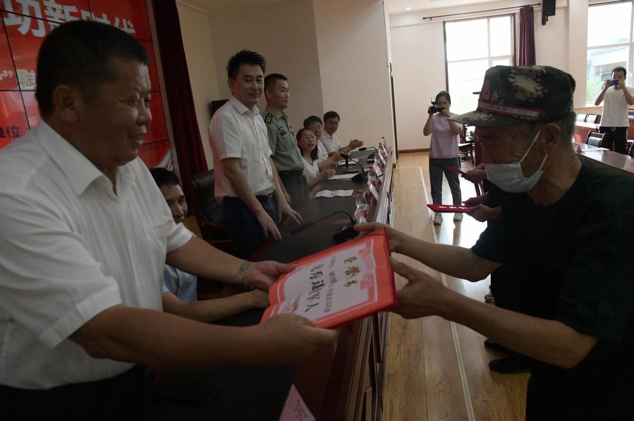 8月1日下午,灤平縣金溝屯鎮(zhèn)下營子村聯(lián)合愛心企業(yè)中國郵政儲蓄銀行灤平支行、灤平盛陽村鎮(zhèn)銀行金溝屯支行和承德久財農(nóng)牧開發(fā)有限責(zé)任公司共同舉辦了“退伍不褪色 建功新時代”第二屆“八一”慰問退役軍人座談會;顒蝇F(xiàn)場,大家歡聚一堂,共同慶祝中國人民解放軍建軍95周年,共敘魚水深情,并為優(yōu)秀退役軍人頒發(fā)榮譽(yù)證書。 王海琦 郎朗 攝