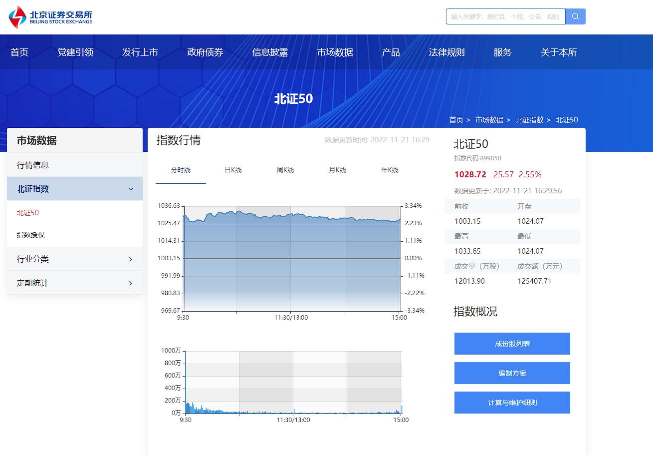 北交所首個指數(shù)——北證50成份指數(shù)(簡稱北證50)于11月21日正式發(fā)布實(shí)時行情。上線首日,北證50收盤上漲2.55%,報(bào)1028.72點(diǎn),開盤后走勢平穩(wěn),樣本股成交活躍,提高了整個市場活躍度。據(jù)了解,北證50以2022年4月29日為基日,基點(diǎn)為1000點(diǎn)。