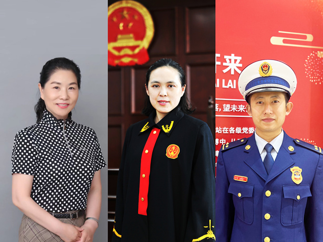 從左到右依次為全國(guó)最美信訪干部、北京市豐臺(tái)區(qū)信訪辦公室二級(jí)巡視員王凱,北京市朝陽區(qū)人民法院南磨房人民法庭副庭長(zhǎng)、四級(jí)高級(jí)法官付艷,北京市朝陽區(qū)消防救援支隊(duì)奧林匹克公園特勤站副指導(dǎo)員、三級(jí)指揮員仇志宏