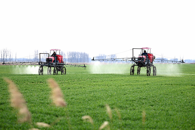 2月14日,安徽蚌埠五河縣農(nóng)民駕駛農(nóng)機(jī)給小麥噴灑農(nóng)藥。新華社記者 黃博涵攝